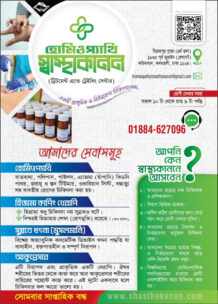 হোমিওপ্যাথি স্বাস্থ্যকানন “একটি আধুনিক ও নির্ভরযোগ্য চিকিৎসা কেন্দ্র” স্বাস্থ্য আপনার চিকিৎসার দায়িত্ব আমাদের।